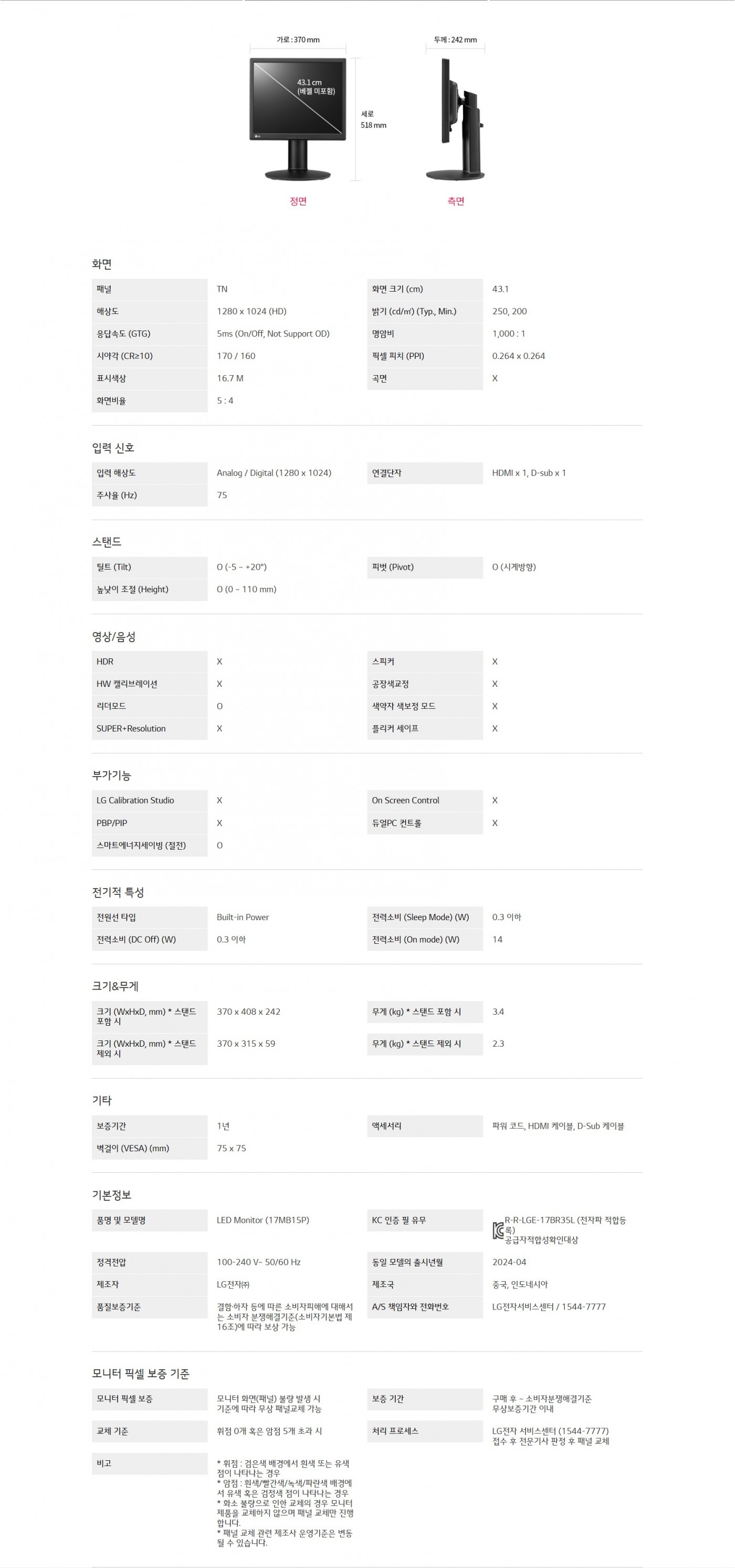 화면 크기 (cm) : 43.1