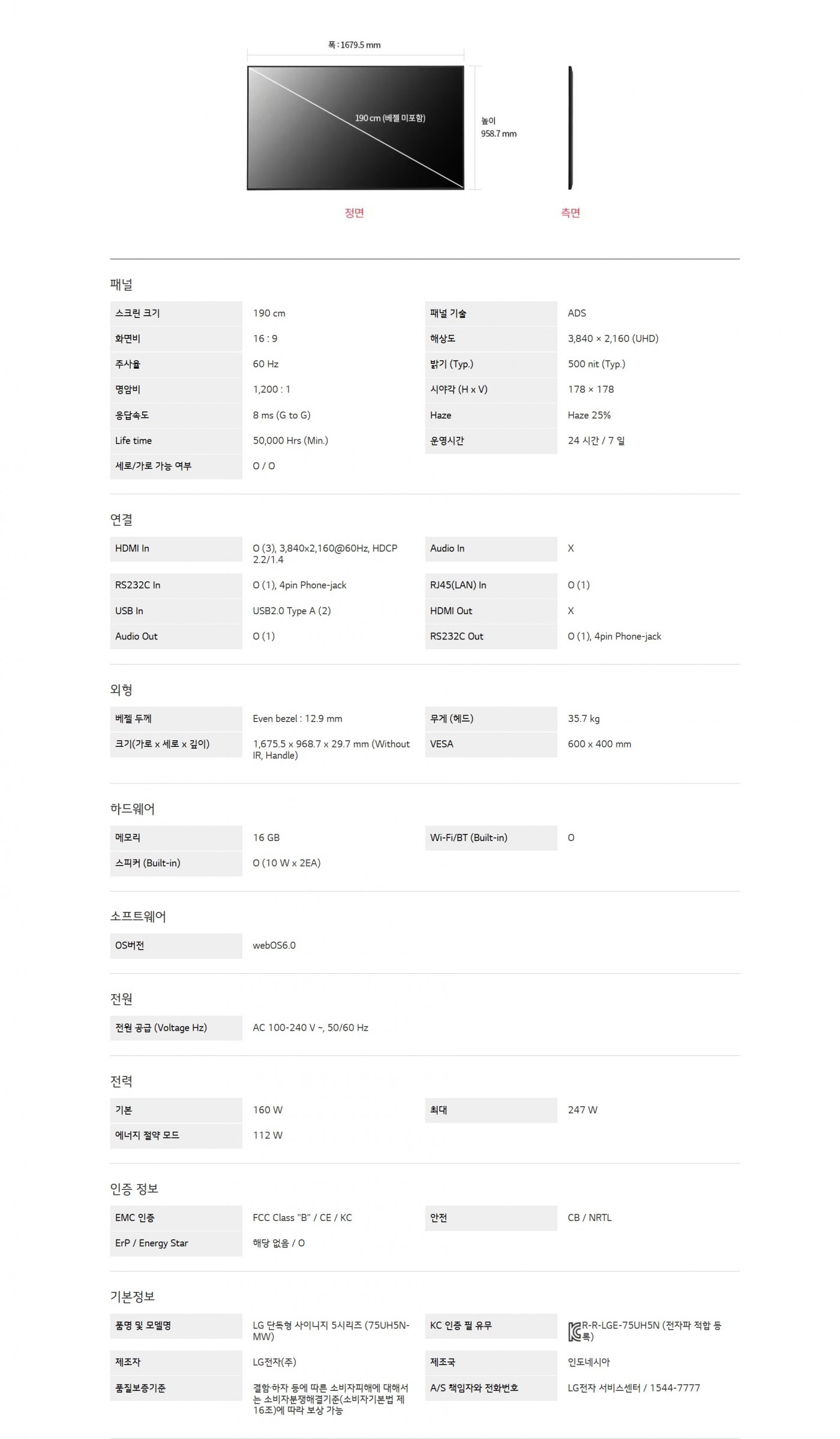 LG 단독형 사이니지 5시리즈 + 벽걸이 브라켓