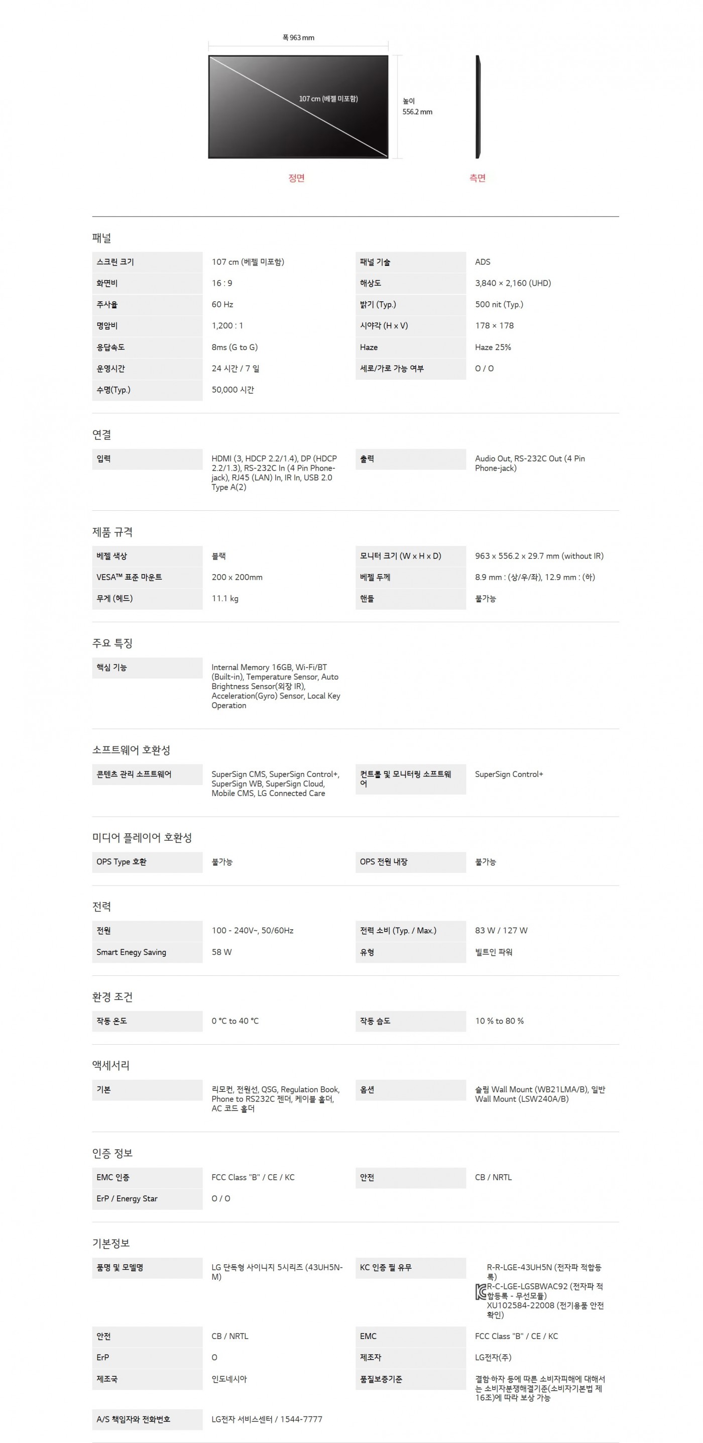 LG 단독형 사이니지 5시리즈