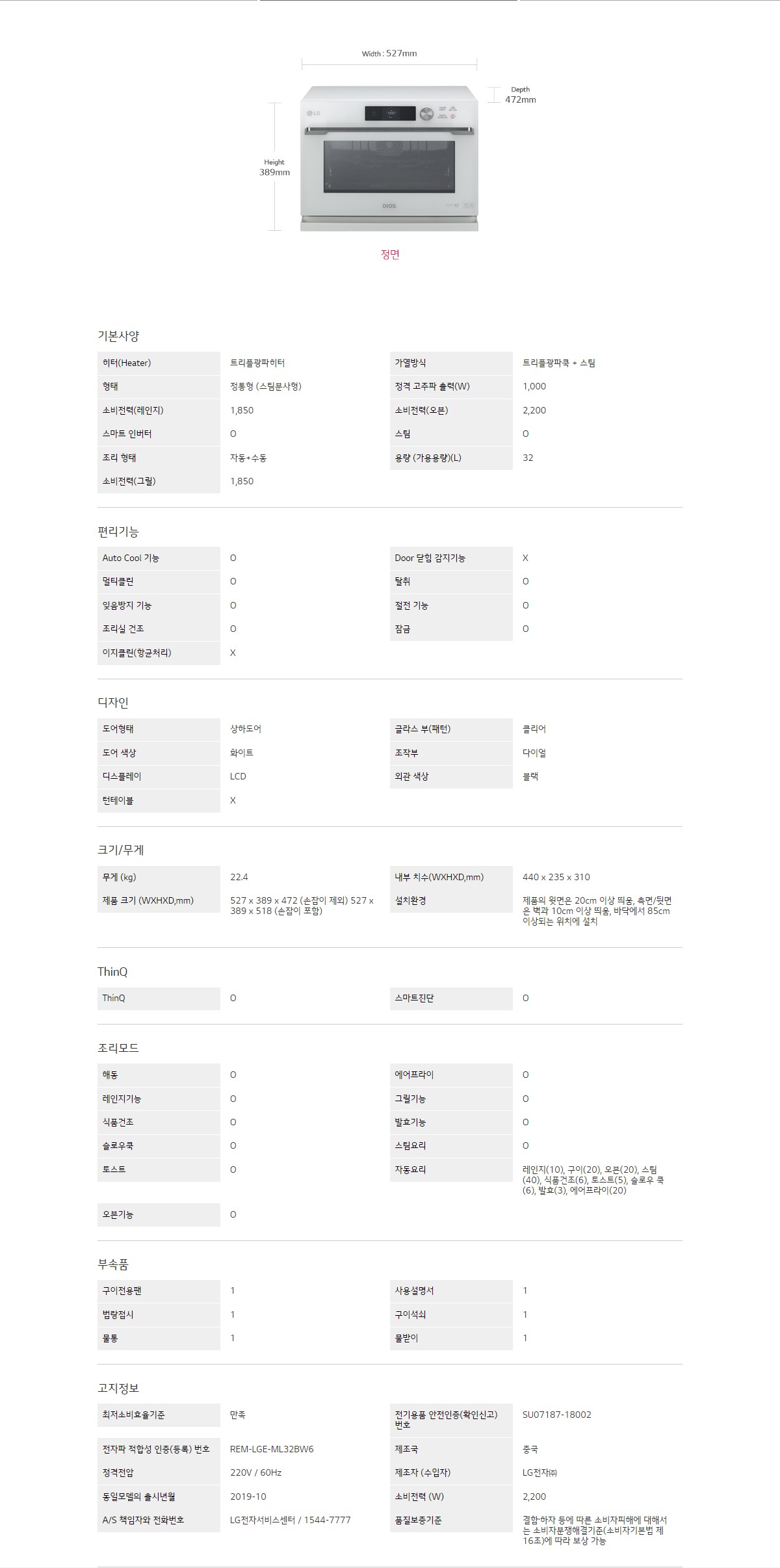 제품 크기(WXHXD) : 527 X 389 X 472mm(손잡이 제외)